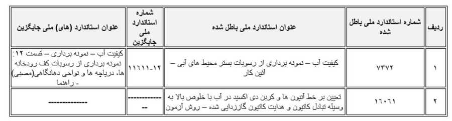 ابطال دو استاندارد ملی در حوزه آب و آبفا